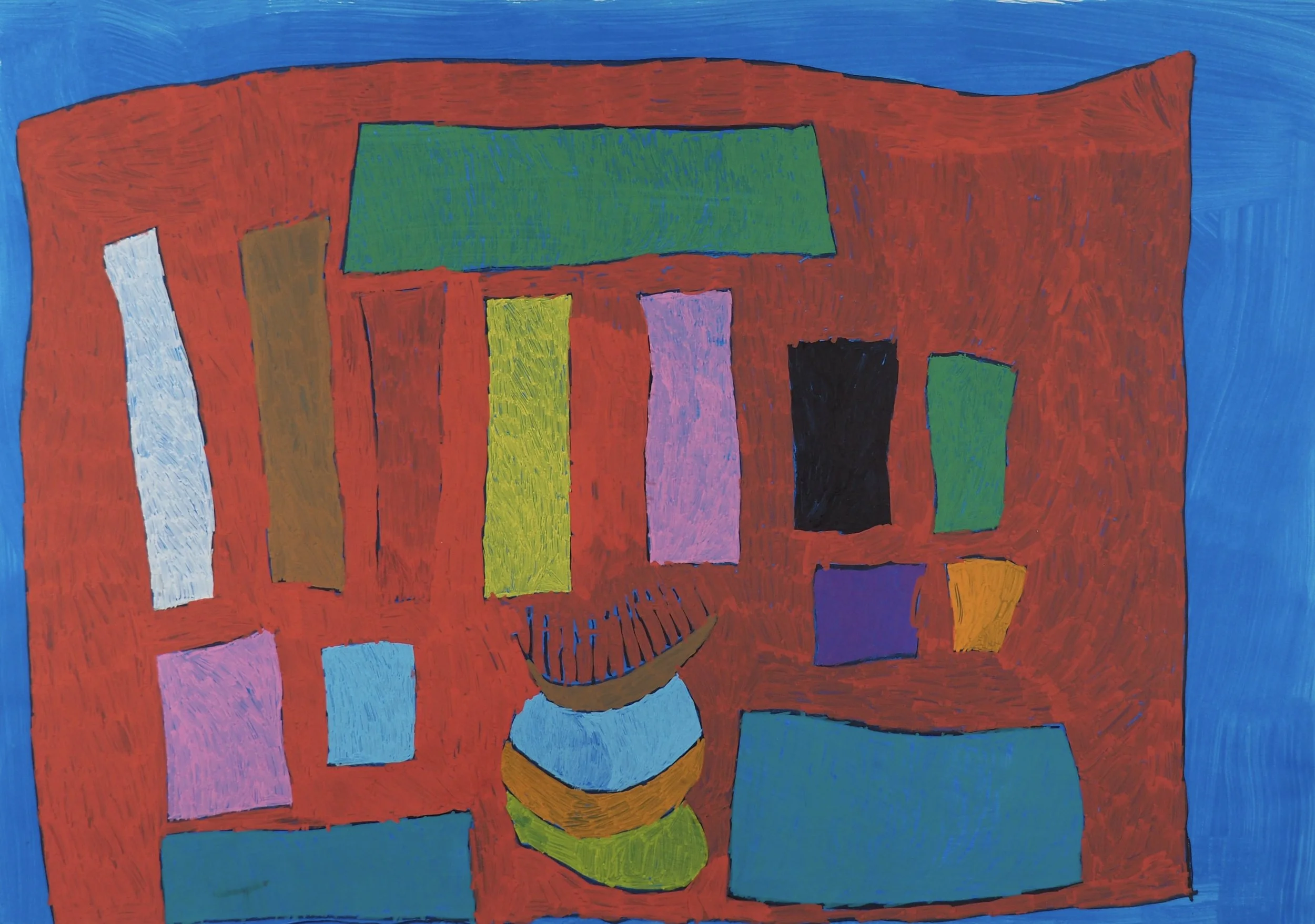 Wawea Wase auf Blau, 2023, 50 x 70 cm, Acrylstift, Acryl auf Papier